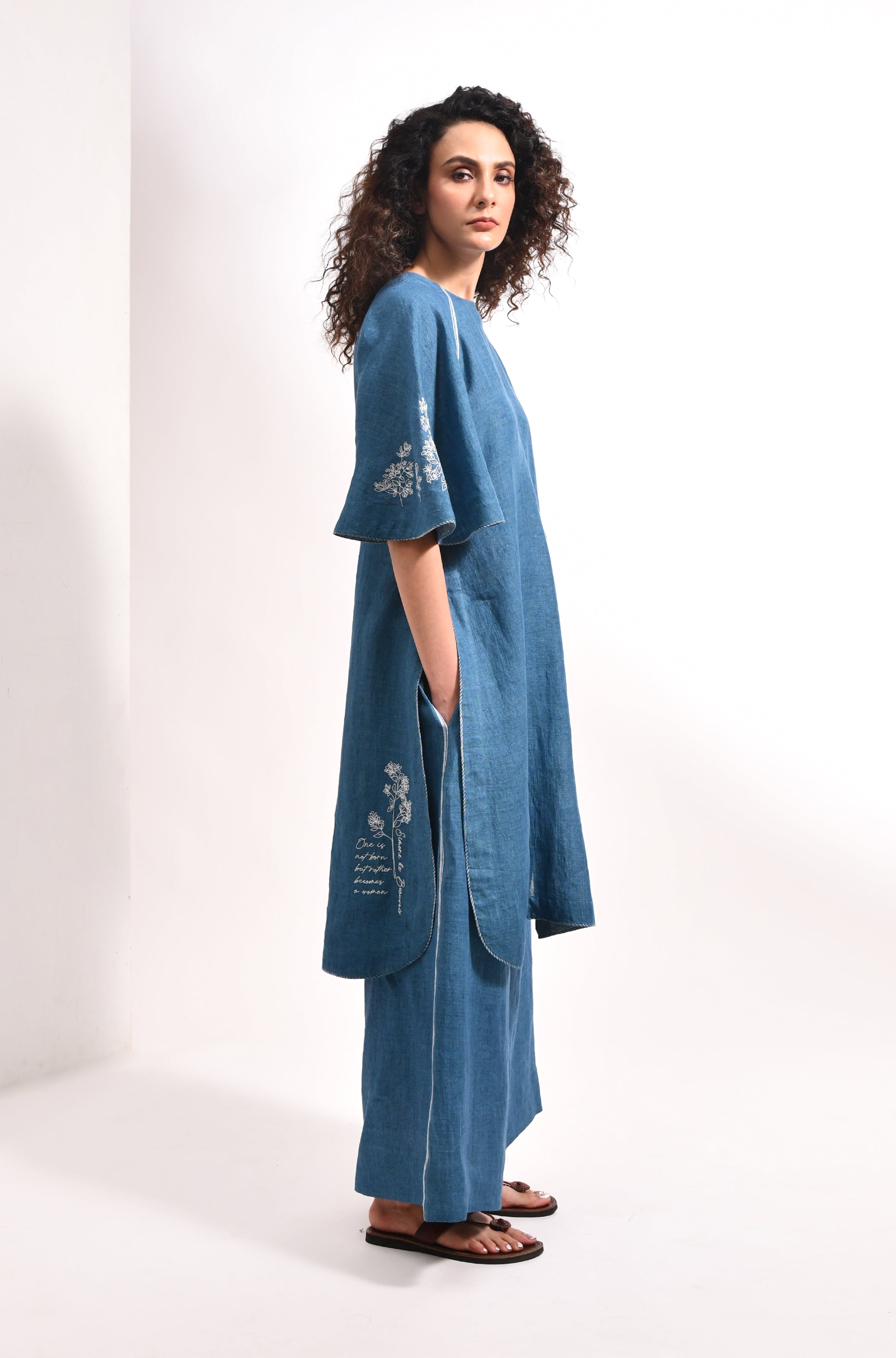 The embroidered bougainvillea dances along the sleeves, echoing the voice of de Beauvoir in every thread.