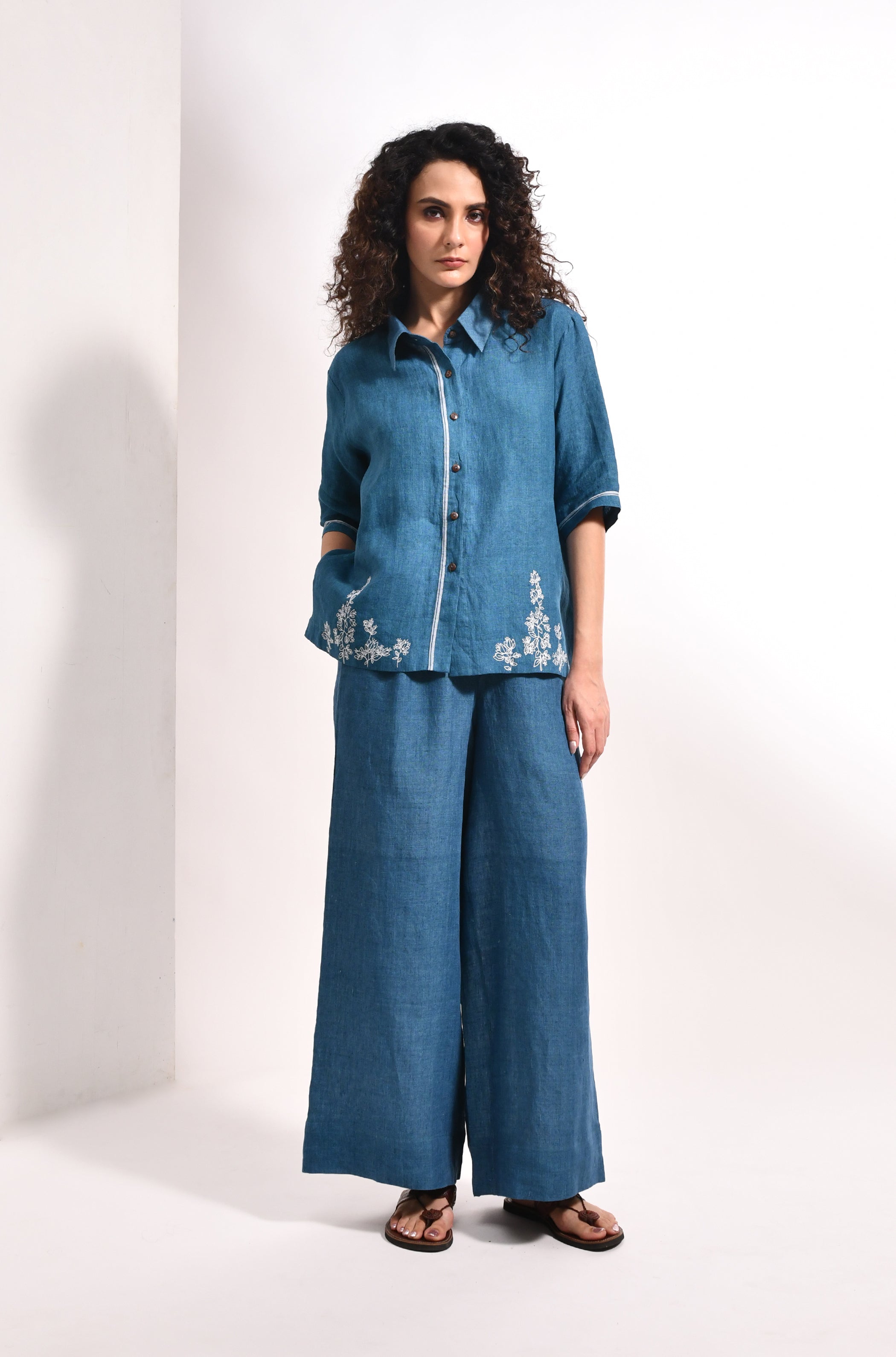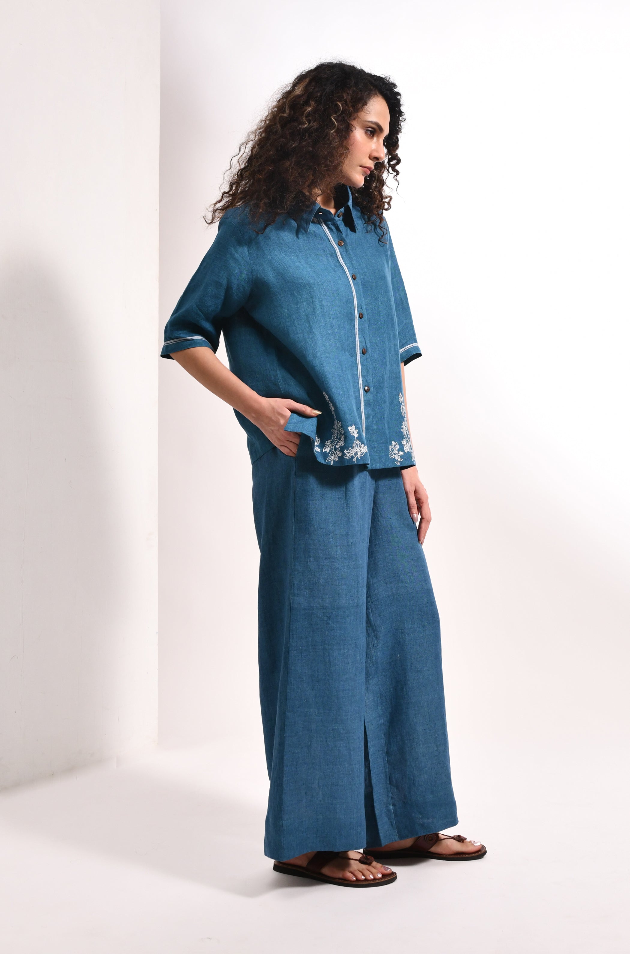 A tribute to Maya Angelou’s words — strength embroidered, voice stitched in thread, a shirt and trouser that move like poetry.