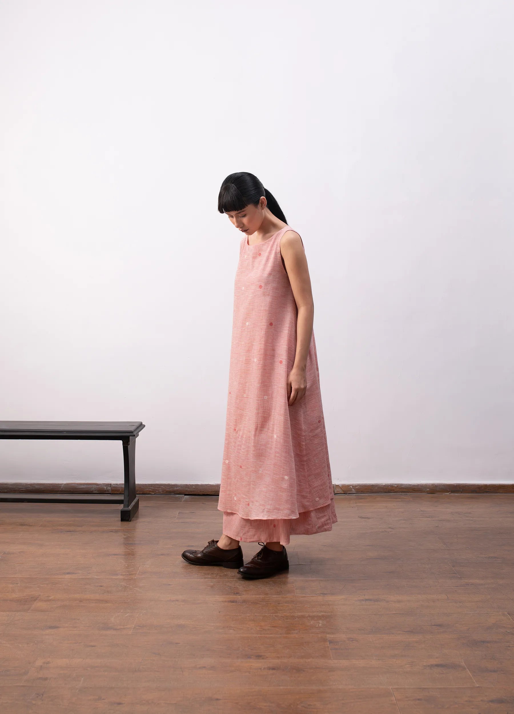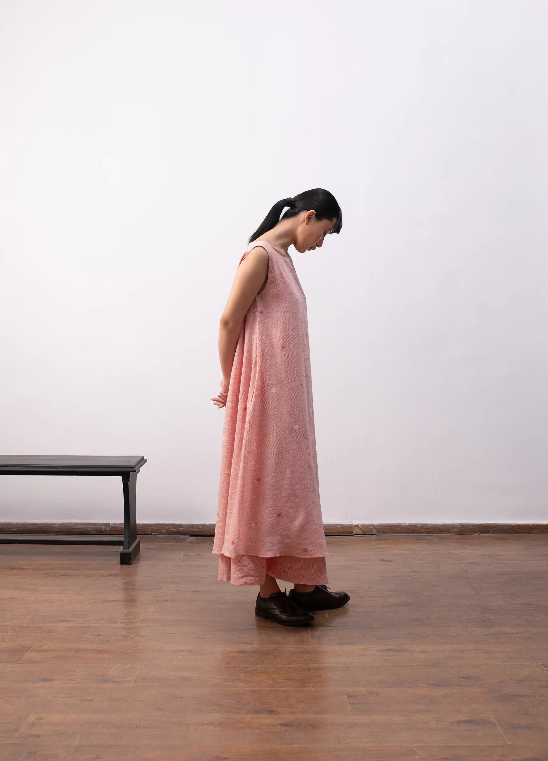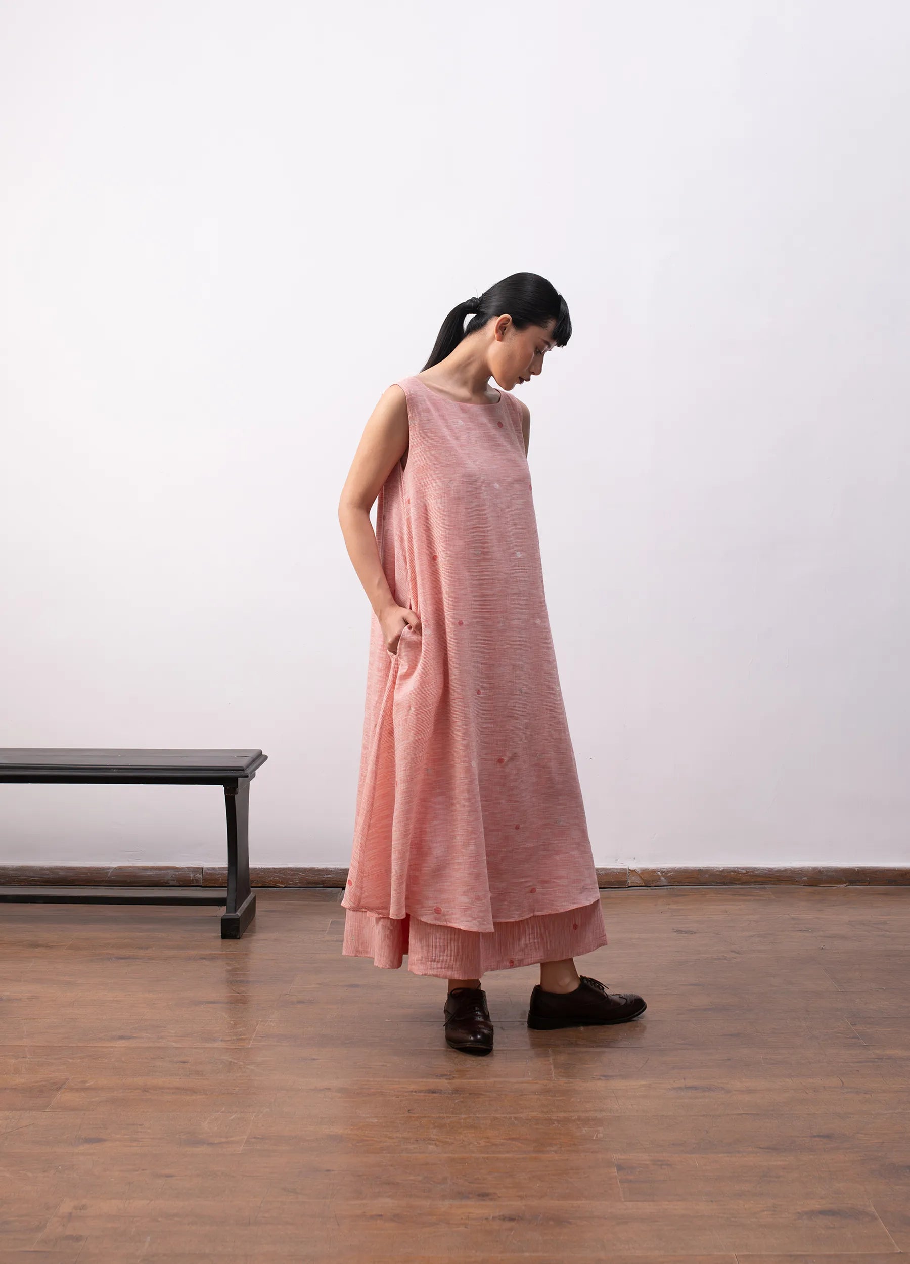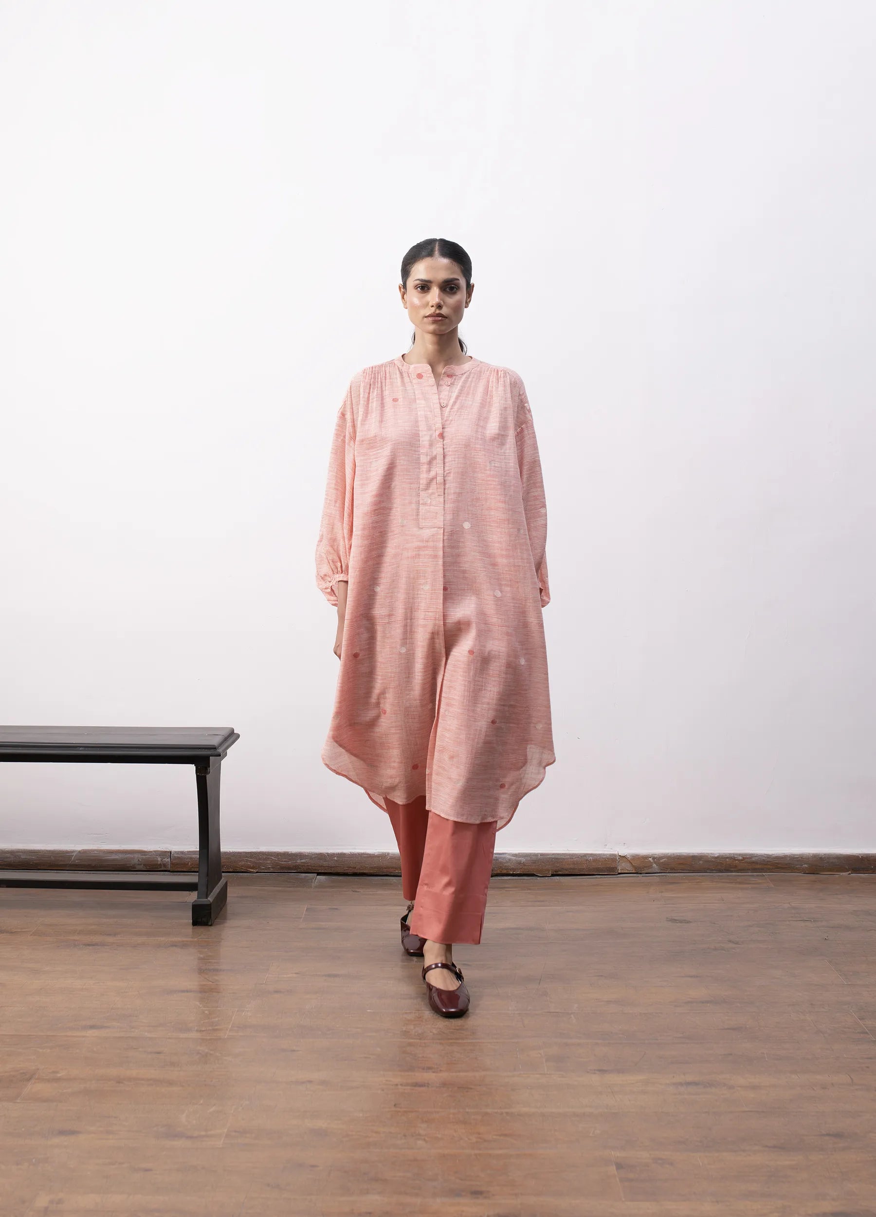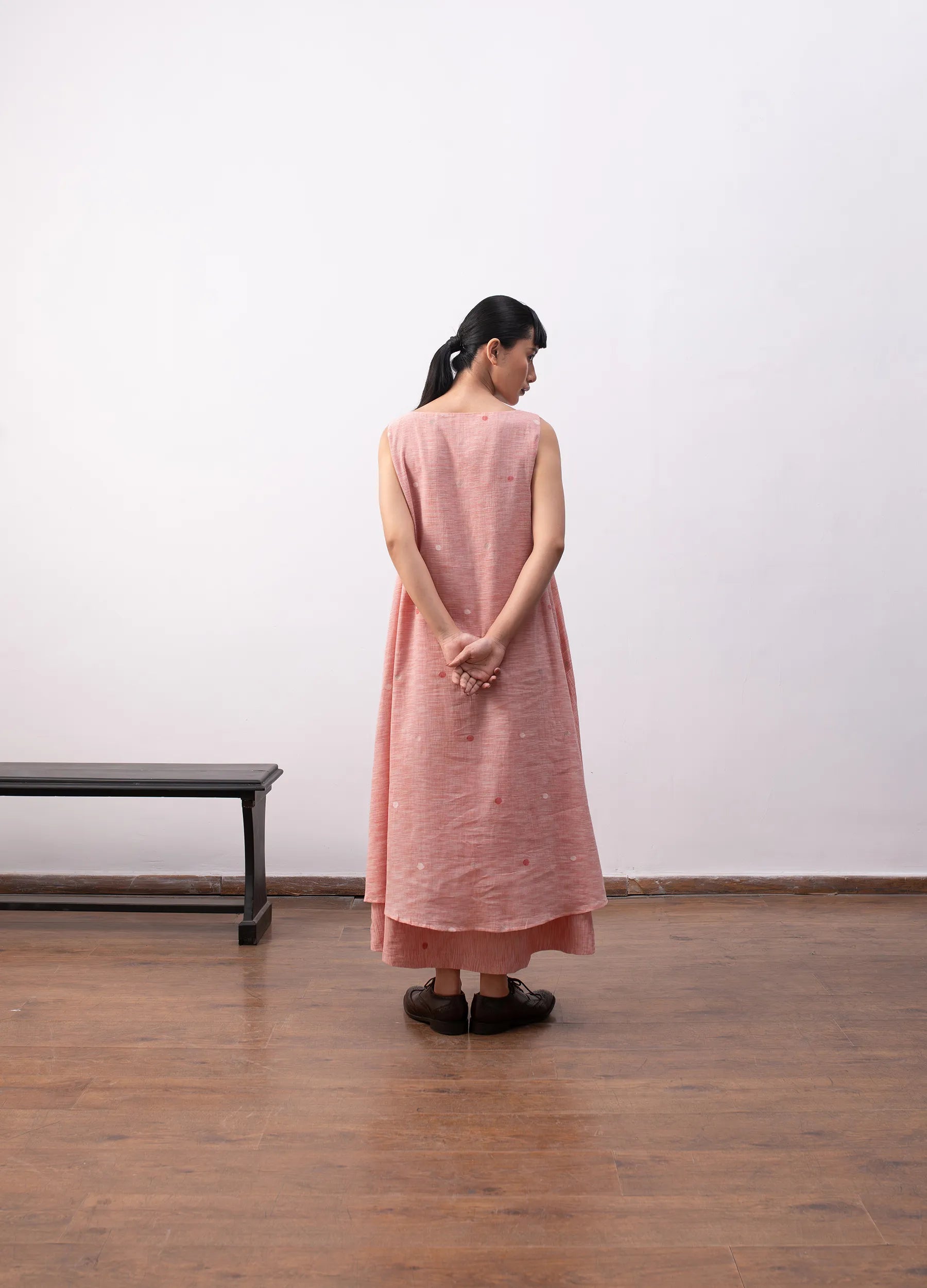 A free-flowing silhouette in handwoven khadi, where surface detail emerges through process.