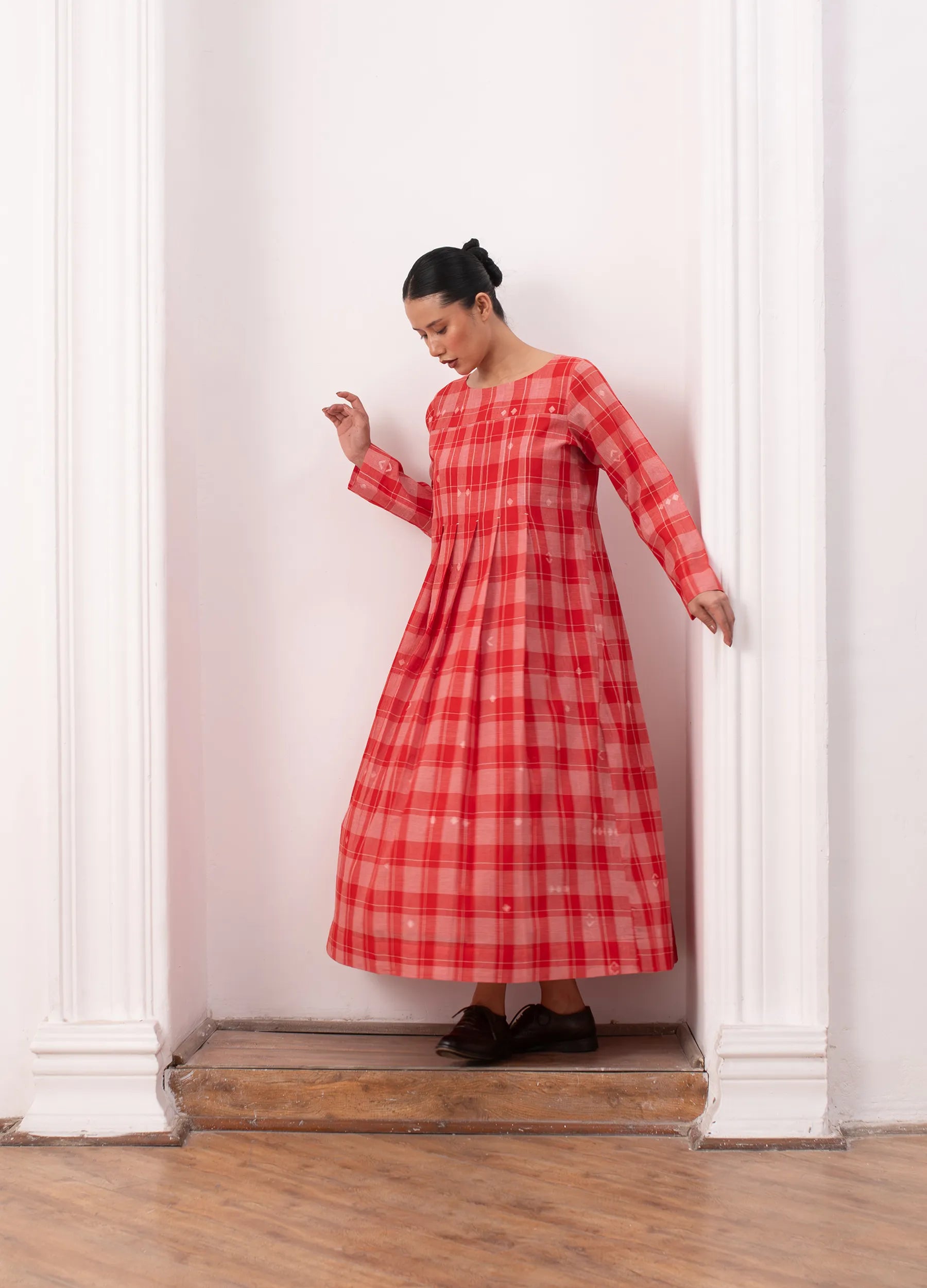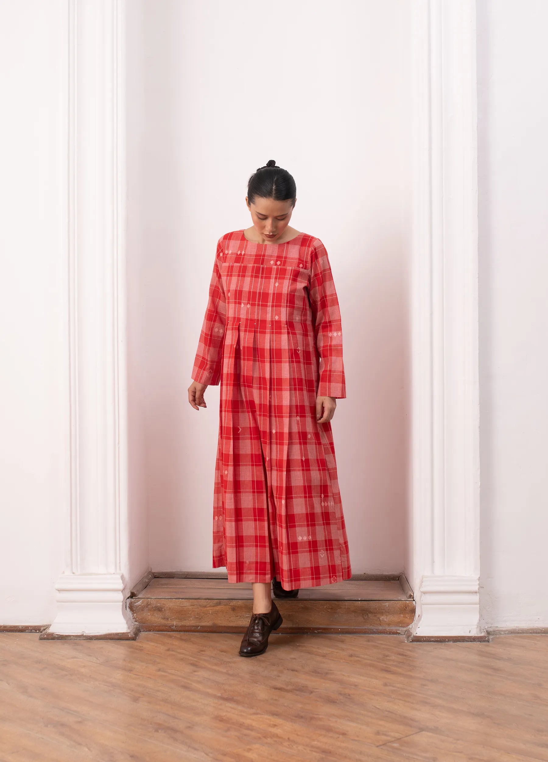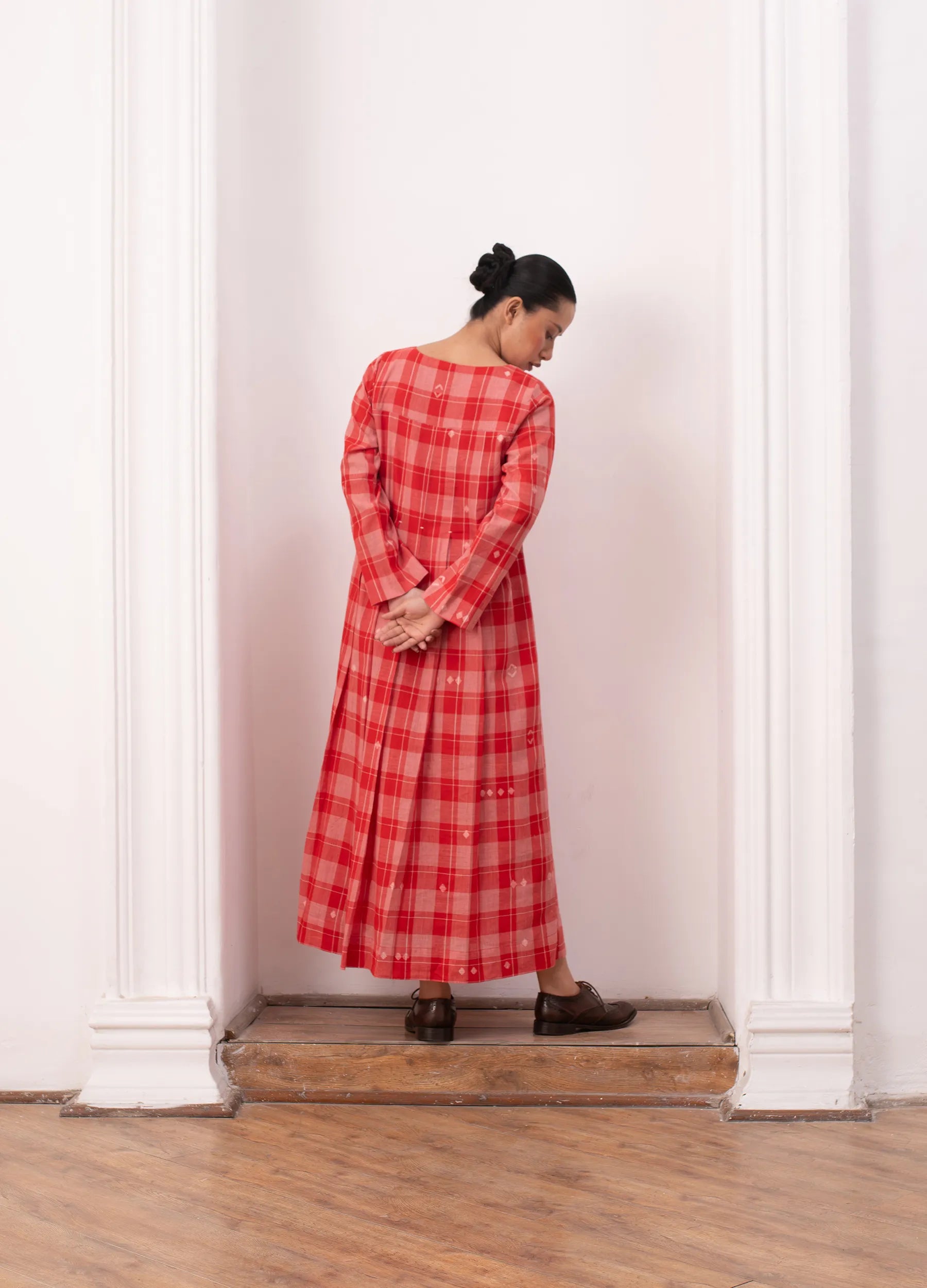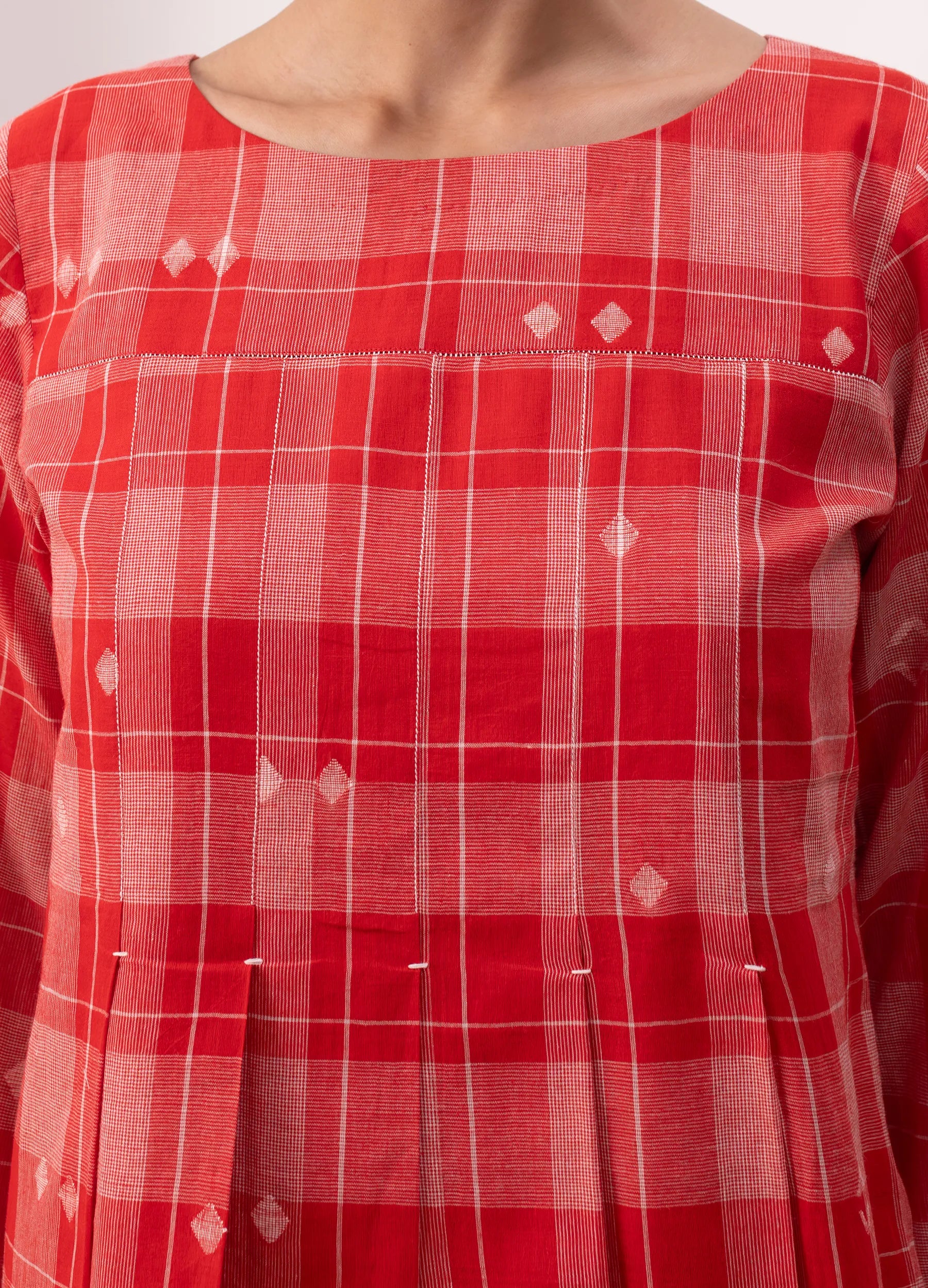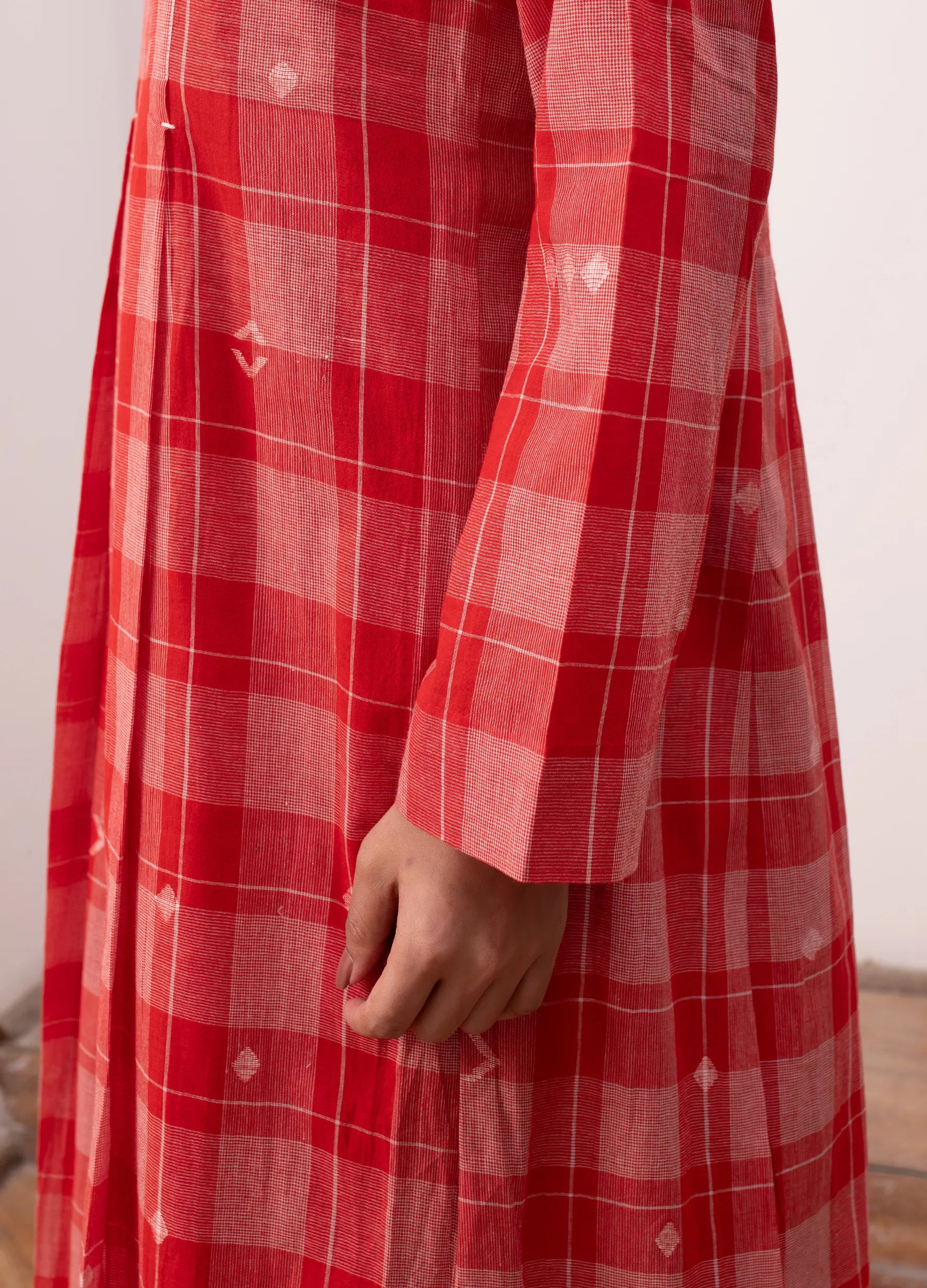 A softly structured silhouette in handwoven khadi, where geometry is expressed through weave.